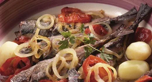 - Descasque e leve as cebolinhas a alourar com a margarina Vaqueiro num tacho, sobre lume forte. Adicione as cenouras, peladas e cortadas em cubinhos, reduza o lume e deixe estufar durante cerca de 5 minutos. Junte o tomate em bocados, tempere com sal e pimenta e deixe cozinhar tapado durante 10 minutos. Introduza os lombos de maruca e os bagos de uva, sem pele nem grainhas. Tape e deixe cozinhar sobre lume brando durante 20 minutos.