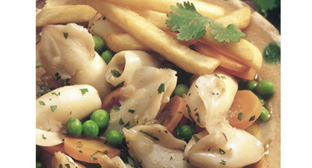 - Pique as cebolas e os alhos, junte a margarina Vaqueiro e leve a cozer num tacho tapado sobre lume brando. Adicione as cenouras cortadas em rodelas e deixe suar durante cerca de 5 minutos. Junte as ervilhas congeladas. Tape e deixe cozer mais 10 minutos. Passe as lulas por água, escorra-as bem e introduza-as no tacho. Tempere com sal e pimenta, tape o tacho e deixe cozer sobre lume brando durante 30 minutos. Polvilhe com coentros picados ou junte 2 a 3 folhinhas de hortelã e acompanhe com batatas fritas.