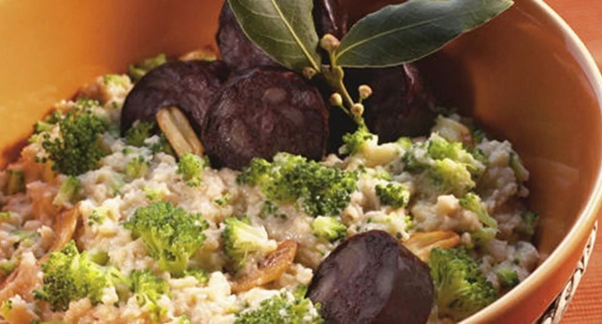 - Sirva as migas de brócolos com as morcelas cortadas em rodelas grossas.