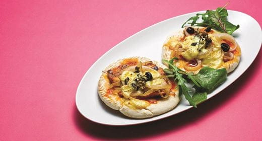- Barre a superfície dos pães com Vaqueiro Alho e Molho Bolonhesa. Por cima espalhe o fiambre e as rodelas de azeitona. Corte os pepinos em rodelas finas e distribua pela superfície dos pães. Salpique generosamente com queijo mozzarella e perfume com óregãos.