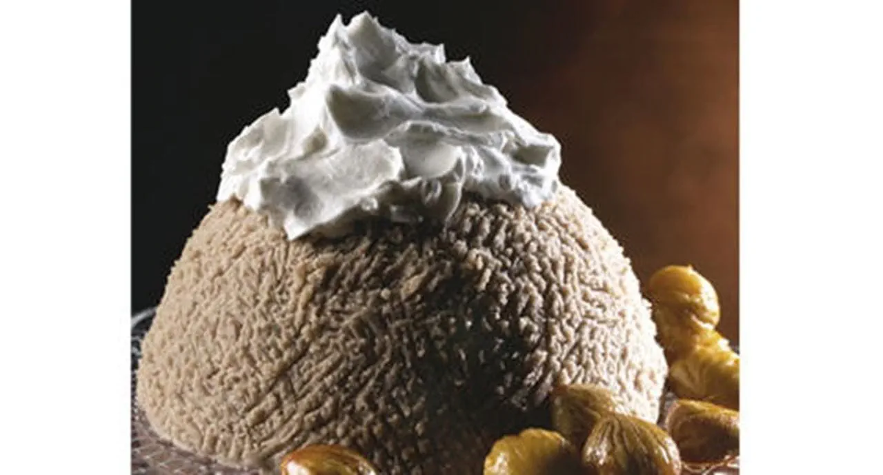 - Disponha o puré de castanhas em pirâmide sobre o prato de serviço e risque-o com os dentes de um garfo.