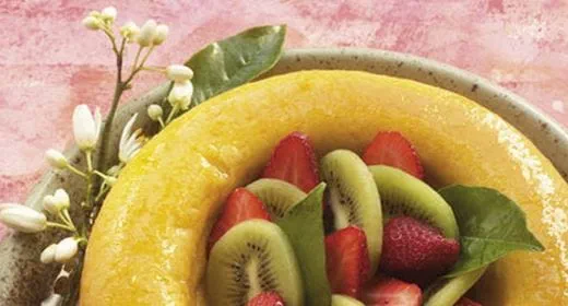 - Misture muito bem com o puré de banana e distribua por tacinhas. Leve ao frigorífico e deixe refrescar bem.
