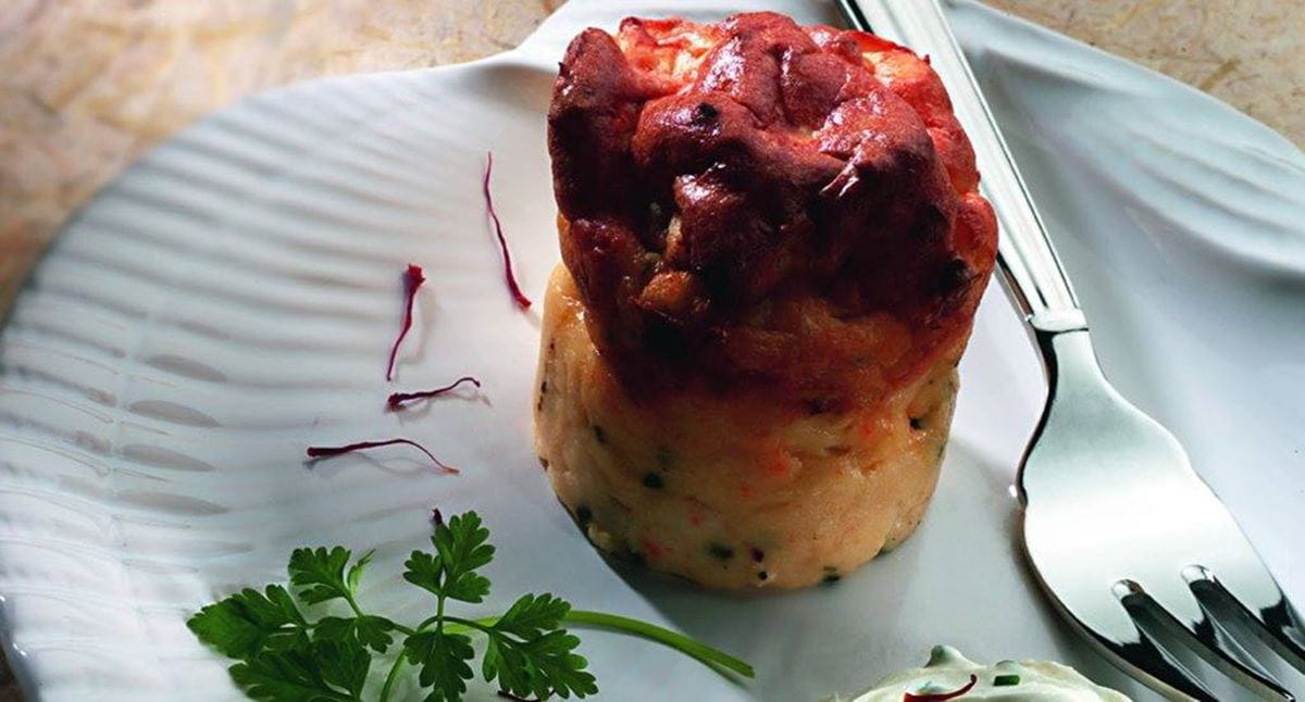 - Bata as restantes natas e junte o açafrão diluído num pouco de água. Incorpore o sumo de limão e o restante cebolinho picado. Misture com cuidado, rectifique os temperos e reserve no frigorífico. Quando as mousses estiverem cozidas, retire-as do forno e desenforme-as. Sirva individualmente, acompanhe com o creme de limão e ervas e decore com o restante cerefólio.