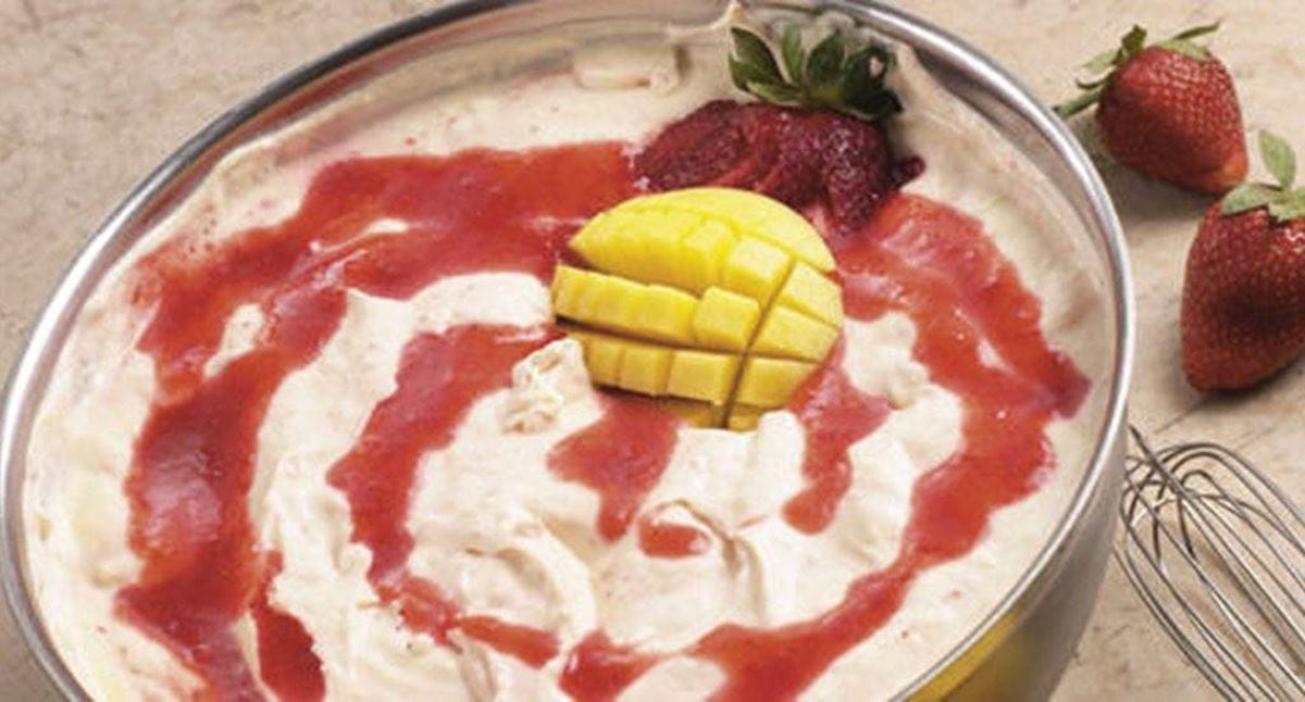 Mousse de Manga com Molho de Morangos
