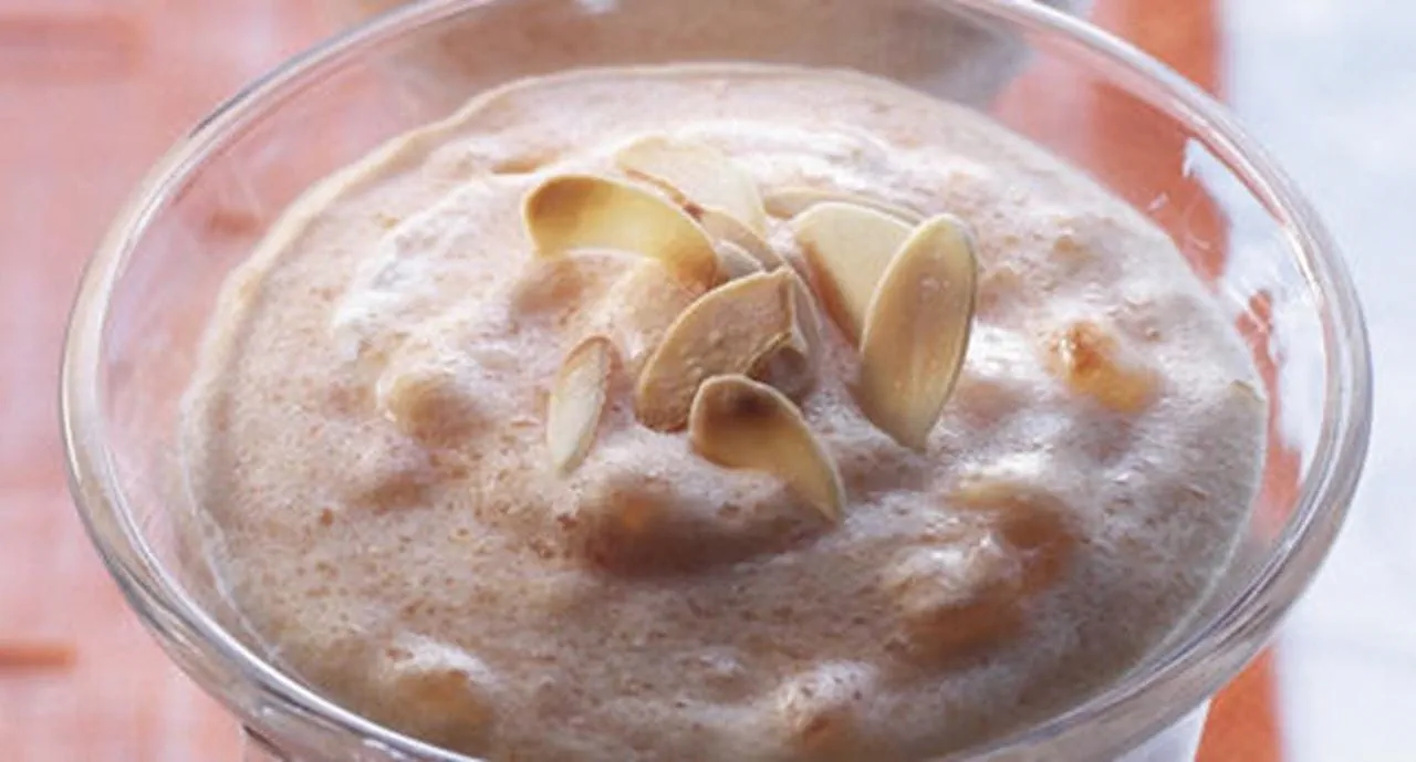 - Deite em tacinhas, polvilhe com as amêndoas e leve ao congelador durante 20 minutos ou coloque no frigorífico.