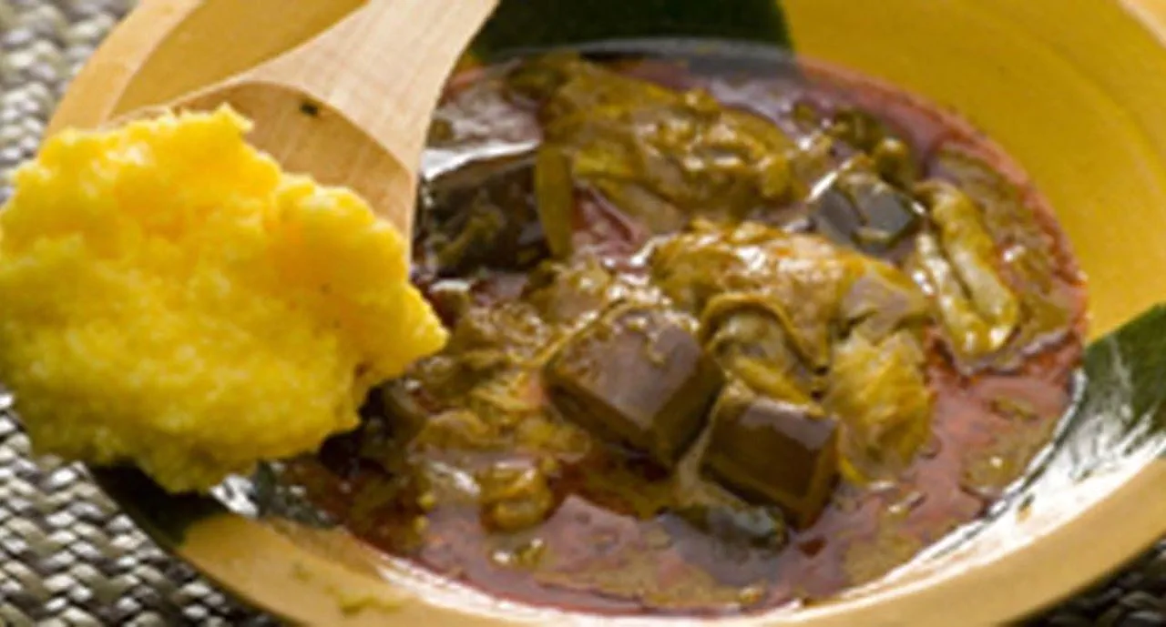- Tempere a galinha com os dentes de alho, descascados e picados, sal o gindungo esfarelado e o sumo do limão. Lave o tomate, tire-lhes os pedúnculos e dê-lhes um golpe em cruz na base. Escalde com água a ferver.Descasque e pique a cebola. Lave a beringela, corte-a em pedaços e salpique com sal. Deixe a escorrer dentro de um passador.Derreta a Vaqueiro num tacho, junte os pedaços de galinha e deixe alourar um pouco. Junte a cebola picada. Pele o tomate, limpe-o de sementes e pique-o em pedaços. Deite o tomate no tacho e adicione a muamba de déndem. Tape e deixe cozinhar sobre lume muito brando. Entretanto corte lave os quiabos e corte-os em rodelas finas. Passe a beringela por água corrente e escorra bem.Quando a galinha estiver macia, junte-lhe os quiabos e a beringela, rectifique o sal e deixe cozinhar até os legumes estarem tenros. Acompanhe com feijão de palma e funje de milho.