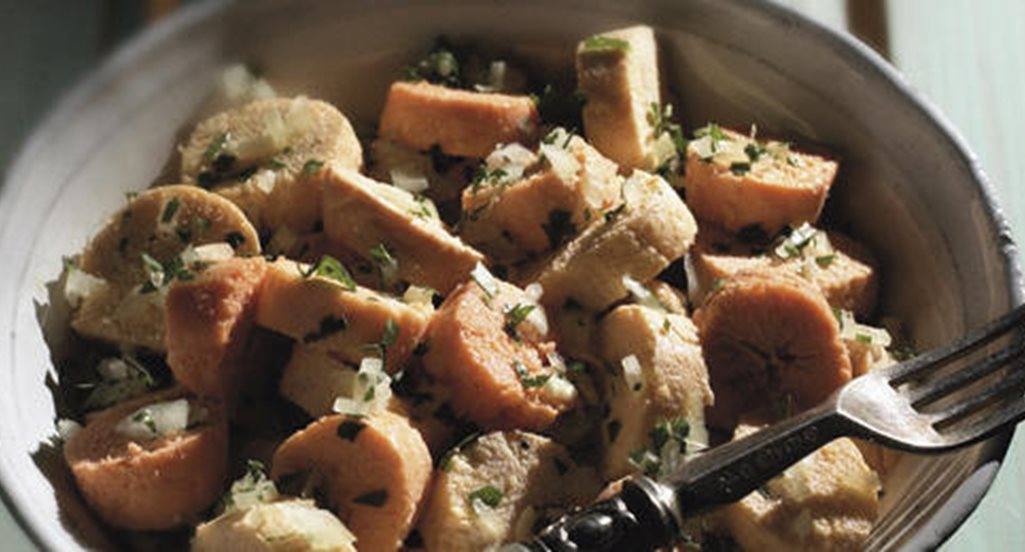- Depois de frias, corte as ovas em rodelas e coloque-as numa taça. Misture o azeite com o vinagre e deite sobre as ovas.