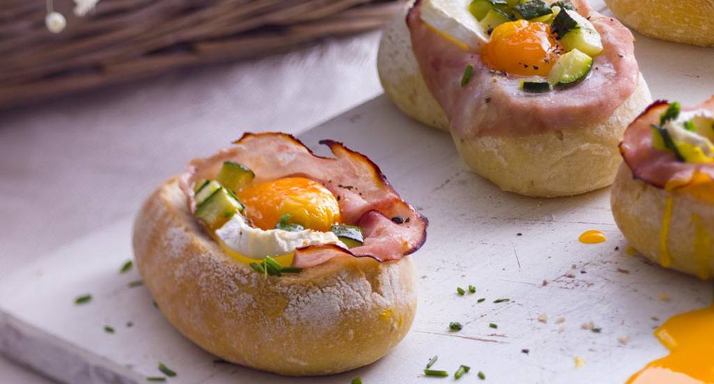 - Forre as caixas de pão com as fatias de fiambre, por cima distribua a curgete e as rodelas de queijo chèvre. Pressione um pouco as rodelas de queijo e barre-as com o mel.