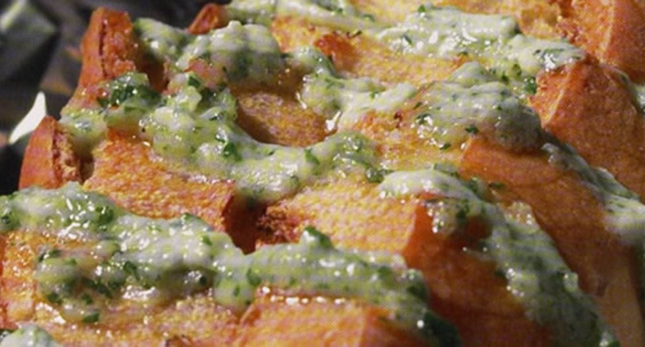 - Corte os cacetes em fatias com 1 dedo de espessura, sem contudo as separar completamente. Barre as fatias obtidas de ambos os lados com a pasta obtida e aperte de modo a que as fatias fiquem bem juntas.