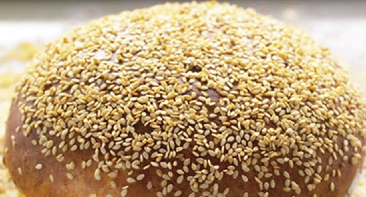 - Molde numa bola e coloque sobre um tabuleiro untado com Vaqueiro. Pincele a superfície com um pouco de leite e salpique com sementes de sésamo. Leve ao forno durante cerca de 25 minutos.