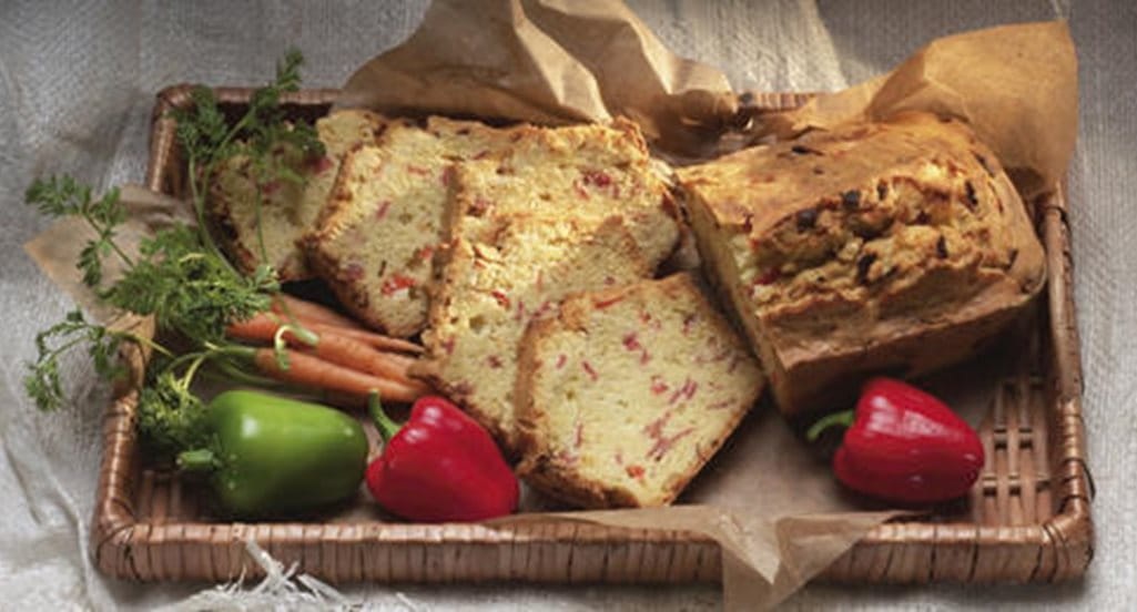 - Deite a mistura obtida numa tigela grande e incorpore a farinha peneirada com o fermento e o sal. Misture bem. Adicione o queijo cortado em cubinhos, o salame em tirinhas e o pimento vermelho, previamente enxuto em papel de cozinha e cortado em pedacinhos.