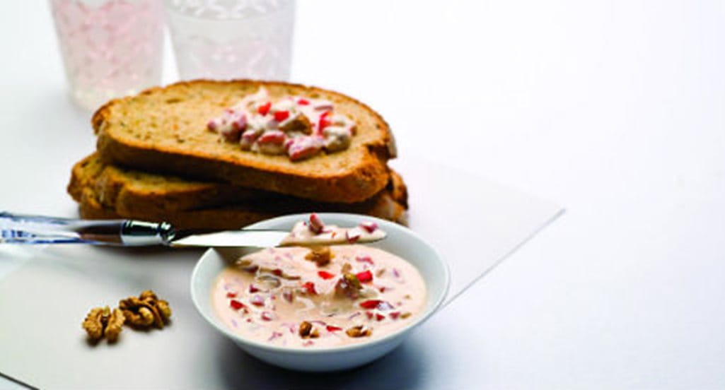 Pasta de queijo com pimento vermelho e nozes picadas