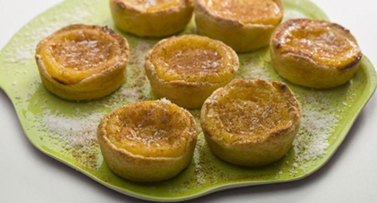 - ± 400 g de massa folhada congelada200 g de açúcar30 g de Maizenaraspa da casca de 1 limão4 dl de leite de coco50 g de Vaqueiro50 g de coco ralado4 gemasVaqueiro Líquida