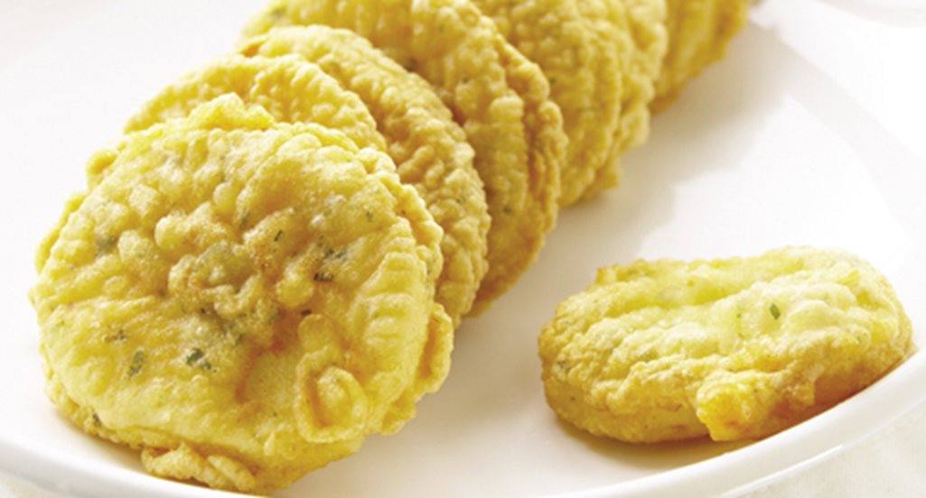- Corte as batatas em rodelas, mergulhe-as no polme preparado e frite no óleo quente até estarem douradas.