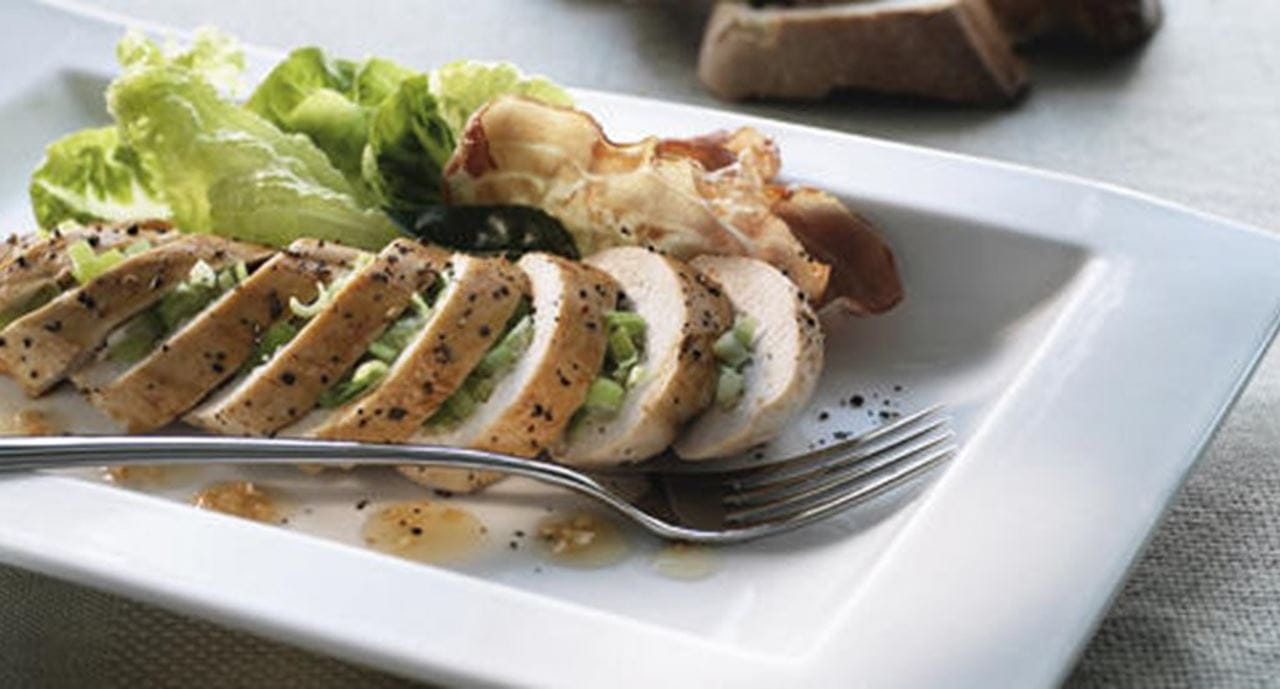 Peito de Frango Recheado com Alho Francês e Alfaces Estufadas
