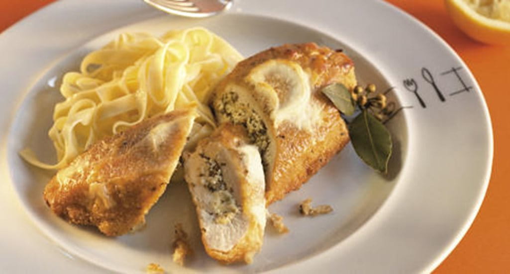 Acompanhe com esparguete ou tagliatelli fresco, cozido. Se quiser uma crosta mais crocante, repita a passagem pelo ovo batido e depois pela mistura de pão ralado.