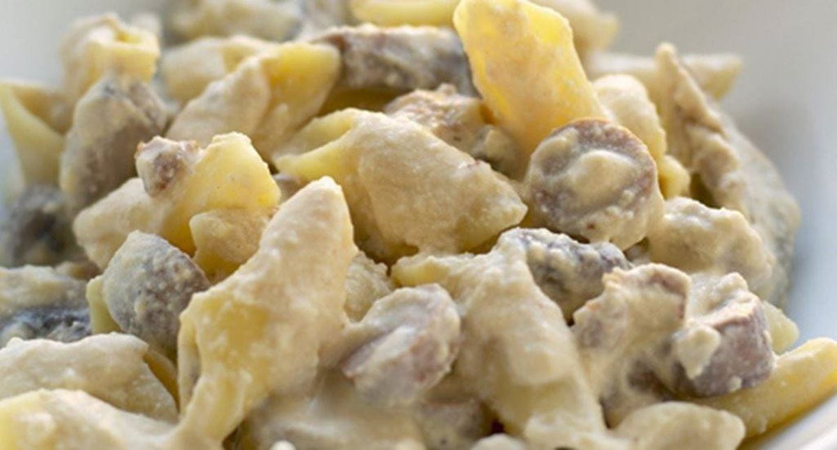 - Entretanto leve ao lume a Vaqueiro Refogado com o bacon em cubos enquanto pica os cogumelos em pedaços, depois de bem lavados e enxutos. Junte os cogumelos ao bacon e deixe saltear sobre lume forte, mexendo. Tempere com pimenta moída na altura e adicione as salsichas cortadas em rodelas e o queijo em creme.