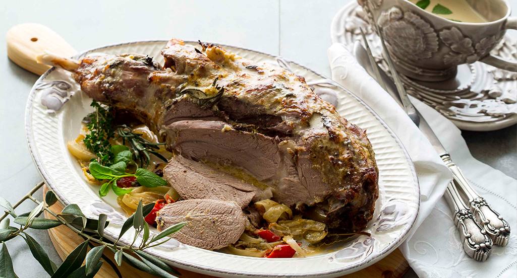 - Faça pequenas incisões na perna de borrego e introduza aí raminhos das ervas aromáticas e os dentes de alho esborrachados e sem pele. Misture a maionese com a massa de alho, a Vaqueiro Líquida e a mostarda. Junte a raspa da casca e o sumo do limão, a pimenta moída na altura e a hortelã picada. Misture bem.