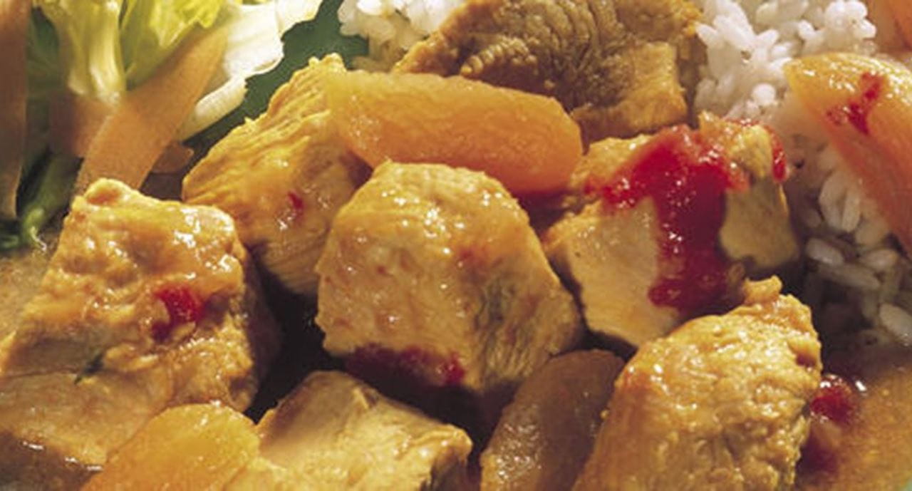 - Descasque e pique as cebolas e leve a alourar com a Vaqueiro. Junte a carne de peru e deixe alourar de todos os lados. Adicione o tomate pelado, previamente escorrido e cortado em bocados, tape e deixe suar cerca de 5 minutos.