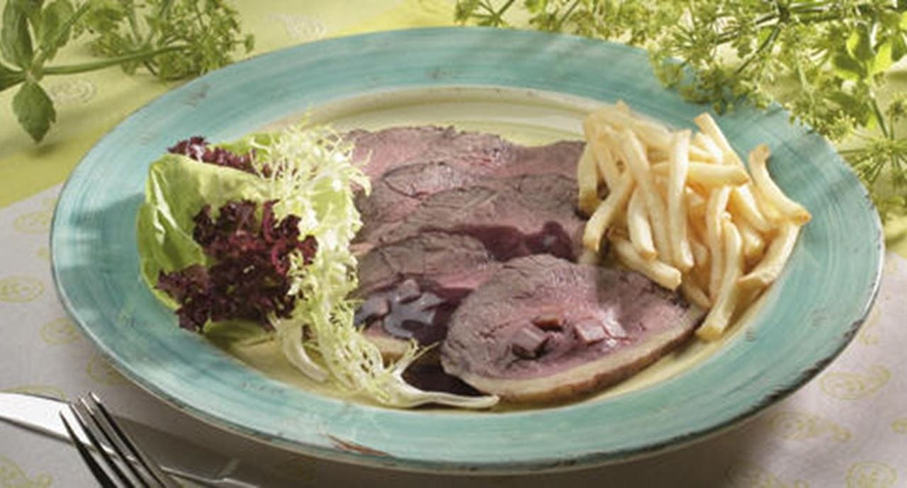 - Retire a carne do tacho, coloque-a na travessa de serviço e deixe repousar cerca de 5 a 10 minutos. Corte-a em fatias e regue com o molho, previamente coado.