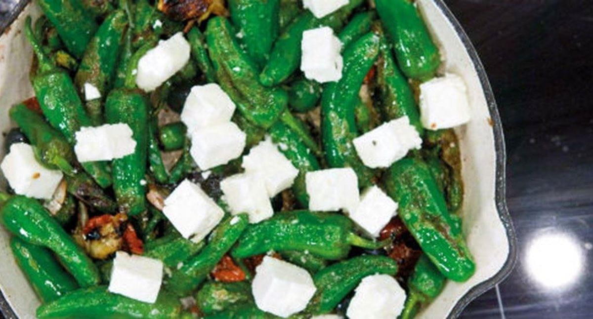 - Quando os alhos começarem a fritar adicione os pimentos padrão e o tomate seco e salteie sobre lume médio a forte até os pimentos estarem moles.