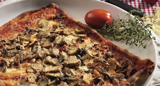 - Desenrole a massa para pizza e coloque-os sobre uma base de metal. Por cima espalhe o creme preparado e leve ao forno durante cerca de 25 minutos.
