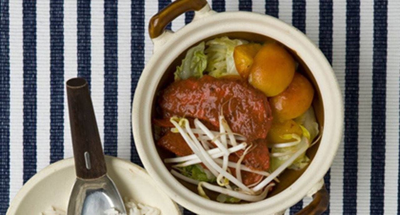 - 500 g de bifanas de porcosal2 colheres de sopa de pasta tandoori± 300 g de couve lombarda± 80 g de Vaqueiro6 a 8 alperces1 colher de sobremesa de açúcar2 colheres de sopa de vinagre de sidrafolhas de hortelã100 g de rebentos de soja frescos