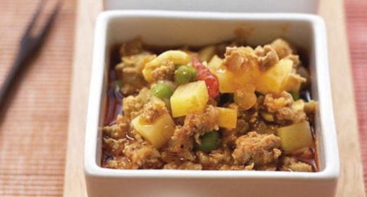 - Escorra o grão-de-bico e coloque-o num tacho grande, conjuntamente com as carnes. Cubra com água e adicione o alho francês, a cebola e o tomate, cortados em cubos. Junte o tomilho, o açafrão e os dentes dealho, descascados e previamente esmagados num almofariz em conjunto com sal. Leve a cozer sobre lume moderado até as carnes estarem macias.