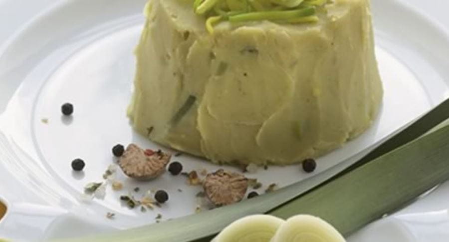 - Leve ao lume e deixe cozer até as batatas estarem macias. Escorra, pele as batatas e reduza-as a puré no passe-vite.