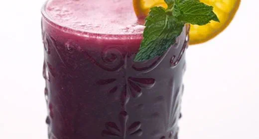 - Coe o sumo através de um coador de rede deite nos copos com os bagos de uva e sirva bem fresco.