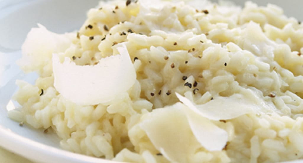 - Entretanto rale em lascas metade do queijo, corte o restante em pedaços e distribua-os pelos pratos onde vai servir o risotto.
