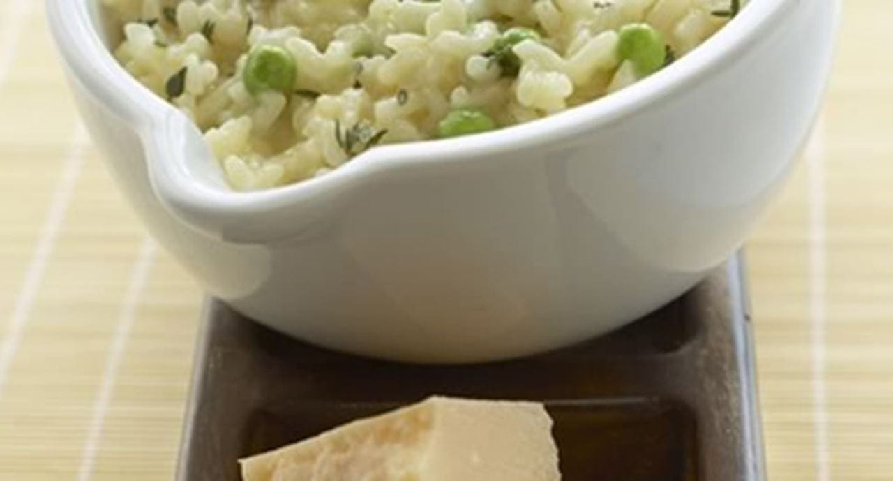- Leve a cebola picada ao lume num tacho com a 70 g de Vaqueiro com Azeite. Quando a cebola começar a alourar, adicione as ervilhas, tape e deixe suar durante cerca de 5 minutos. Junte o arroz, mexa e deixe-o fritar durante cerca de 5 minutos, mexendo.