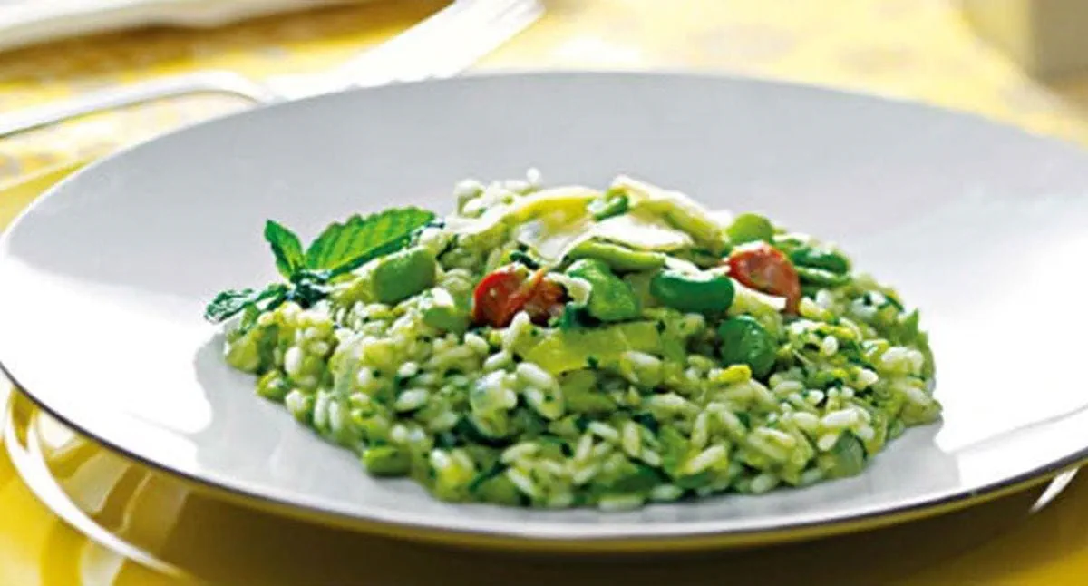 - Deixe descongelar um pouco as favas e tire-lhes a pele. Derreta cerca de 50 g de Vaqueiro Clássicae um dente de alho num tacho, junte-lhe as favas sem pele e tempere com sa, pimenta moída na altura e um pouco de noz moscada, deixe saltear sobre lume moderado durante cerca de 5 minutos. Adicione as folhas de espinafres, de manjericão e de hortelã, mexa e assim que as folhas murcharem retire do lume e mude para um robô de cozinha. Junte as natas. triture grosseiramente e reserve. Leve deite a água e os Knorr Natura Galinha numa panela e leve ao lume. Descasque a cebola e pique-a finamente. Corte o alho francês em rodelas, lave e escorra. Tire a pele à linguiça e corte-a em rodelas. Deite mais cerca de 50 g de Vaqueiro Clássicae o outro dente de alhono mesmo tacho que usou para as favinhas, leve a derreter sobre lume moderado, adicione a cebola picada, o alho francês e a linguiça. Deixe cozinhar até os legumes estarem moles, junte o arroz e quando começar a ficar translúcido refresque com o vinho branco. Mexa e quando o arroz o tiver absorvido completamente, já adicionando o caldo de galinha, a pouco e pouco e sem parra de mexer.