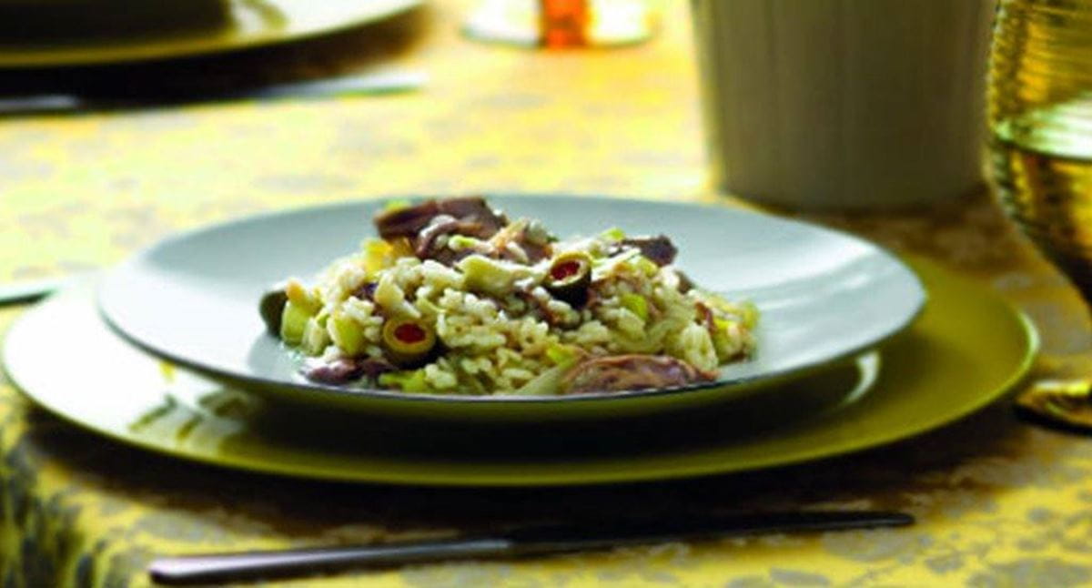 Risotto de pato com azeitonas verdes