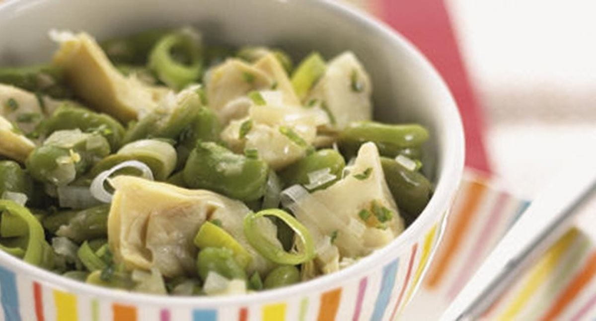 - Leve a lume brando a cebola picada com aVaqueiro Líquida. Corte o alho francês, ou o cebolo, em rodelas finas e junte à cebolada. Adicione também umas folhinhas de hortelã, cortadas em pedacinhos com uma tesoura, Tempere com sal e pimenta, de preferência preta e moída na altura. Tape o tacho e deixe estufar suavemente enquanto tira a pele à favinhas. Deite-as depois no tacho, regue com um pouquinho de água quente. tape e deixe suar cerca de 5 minutos. Entretanto abra a lata, escorra as alcachofras e corte-as em quartos, se estiverem inteiras. Junte-as às favinhas e deixe cozinhar um pouco mais até as favas estarem tenrinhas mas não a desfazerem-se.