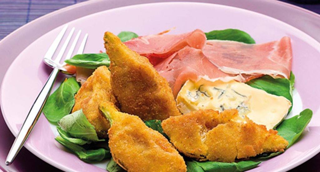 Salada de figos panados com presunto e queijo azul