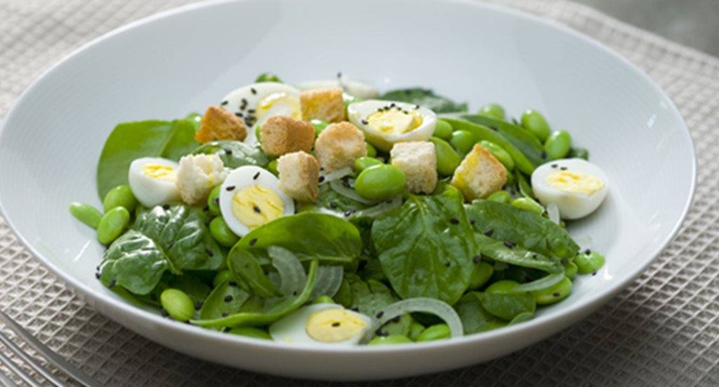Salada de soja com vinagrete de sidra