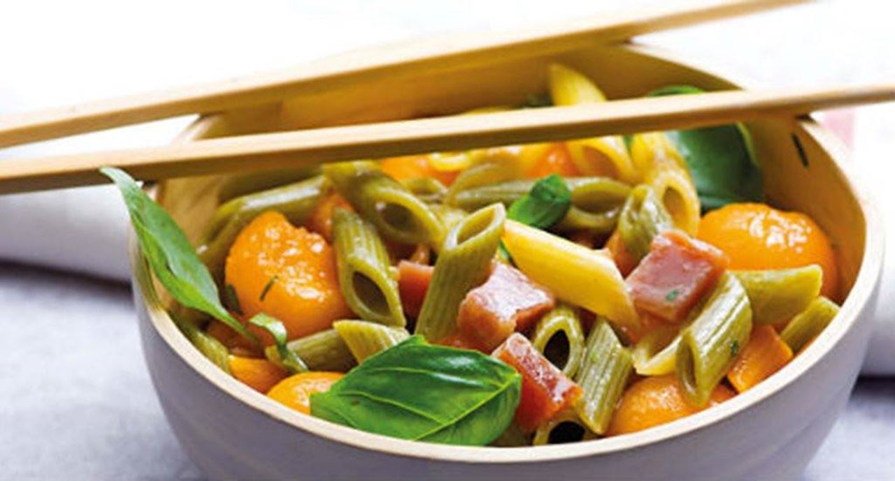 Salada fresca de massa com melão e presunto