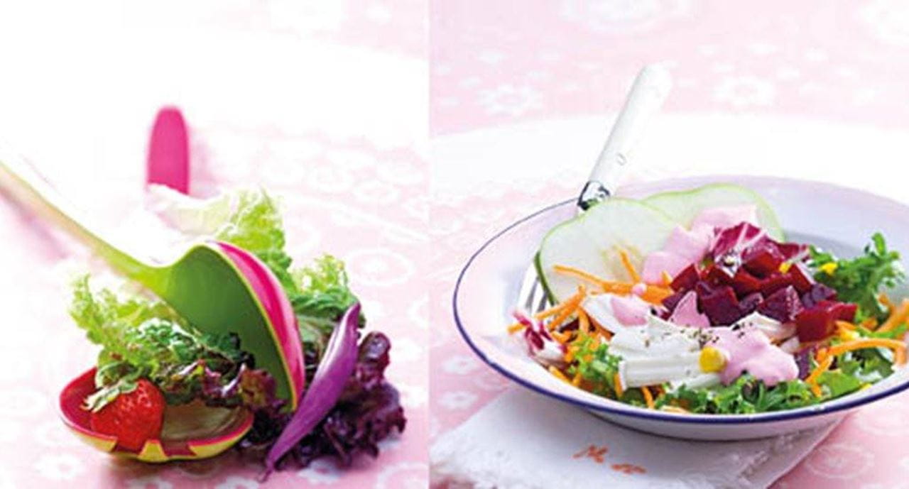Salada rápida de beterraba e queijo fresco com molho rosa