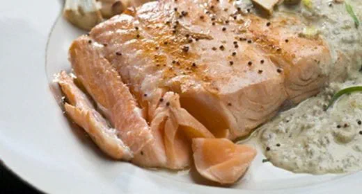 - Unte as postas de salmão com óleo Vaqueiro. Aqueça bem uma chapa para grelhados e leve as postas de salmão a grelhar de ambos os lados. Coloque o salmão na travessa de serviço e barre a superfície das postas com a maionese. Polvilhe com as alcaparras e enfeite com o restante limão cortado em gomos.