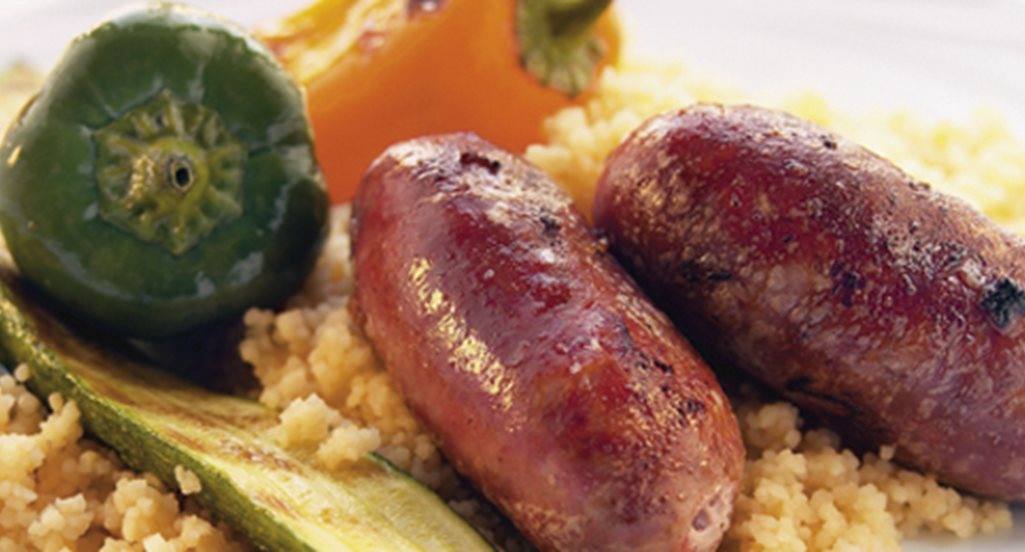 - Por cima disponha as salsichas e sirva com os legumes grelhados.