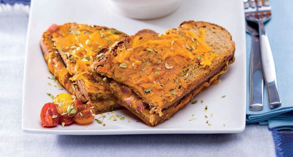 - 2. Derreta 2 colheres de chá de Vaqueiro Sabor a Manteiga numa frigideira larga antiaderente e introduza 2 das fatias de pão.