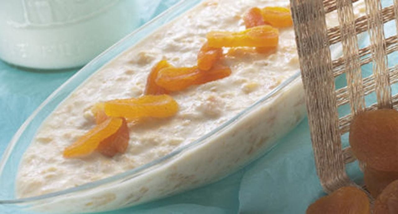 - Coloque os alperces numa taça, cubra com água e deixe de molho. Depois de estarem inchados retire 4 a 5 dos mais bonitos e triture os restantes com a varinha mágica, juntamente com a água em que demolharam. Adicione o leite condensado e continue a bater. Misture com os iogurtes, deite num prato fundo e leve ao frigorífico. Na altura de servir decore com os alperces reservados, cortados em tirinhas.