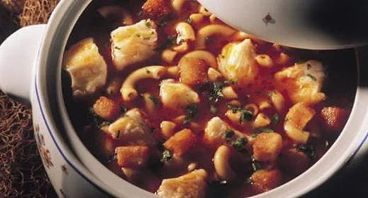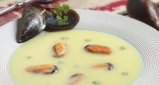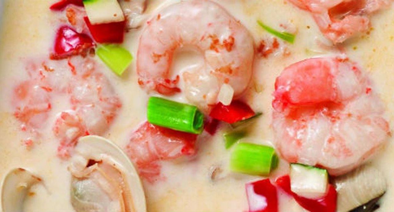 Sopa de camarão e amêijoas com coco
