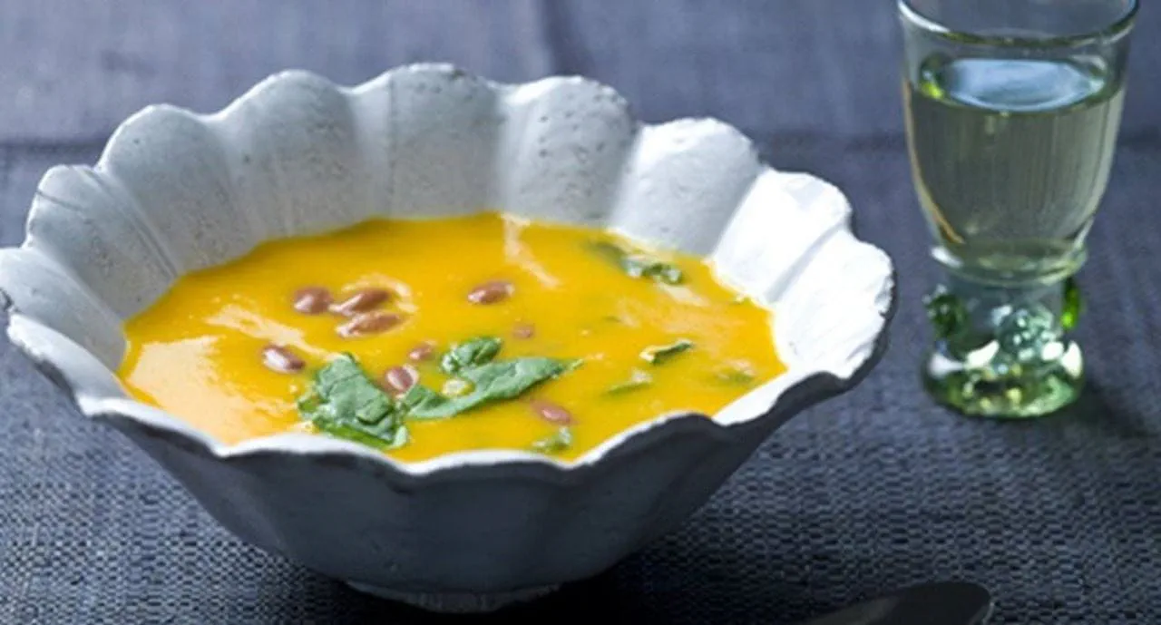 - Junte água a ferver até cobrir os legumes, tempere com sal e deixe cozinhar até estarem macios. Triture os legumes com a varinha mágica e adicione o feijão manteiga e os espinafres.