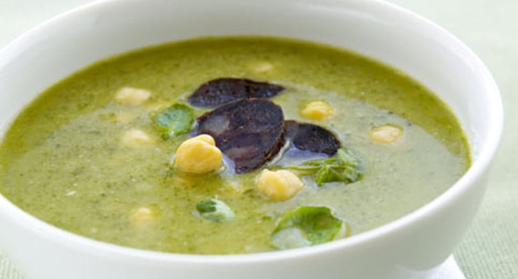 Pode retirar uma concha de grão e agriões antes de triturar a sopa e adicionar outra vez à sopa depois de triturada