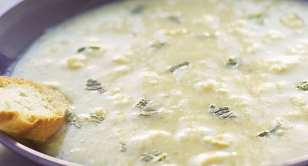 - Sirva a sopa salpicada com folhas de hortelã e com as tostas de alho.