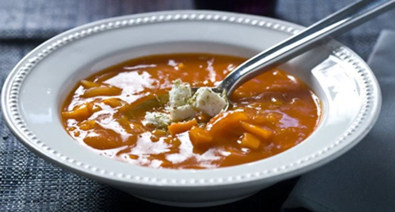 - Corte o queijo feta em cubos pequenos, salpique com orégãos e pimenta moída na altura e sirva com a sopa, numa taça à parte.