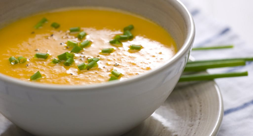 - Reduza tudo a puré com a varinha mágica. Junte um pouco mais de água se achar necessário, rectifique o sal e volte a triturar. Divida a sopa por chávenas e sirva polvilhada com cebolinho picado.
