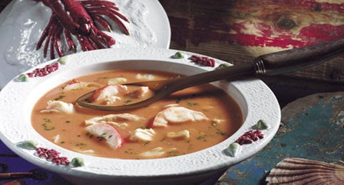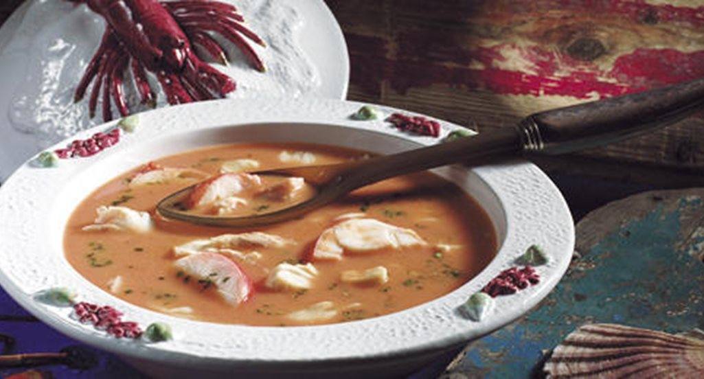 - Derreta a margarina Vaqueiro numa panela, junte a restante cebola, descascada e picada e os tomates, pelados e sem grainhas, esmagados. Deixe refogar durante alguns minutos sobre lume brando, mexendo de vez em quando. Polvilhe com a farinha torrada, mexa e regue com um pouco do caldo de peixe. Reduza a puré com a varinha e adicione o restante caldo mexendo bem (o caldo deve perfazer 1,2 litros, se não for suficiente, adicione um pouco de água). Quando ferver, adicione os coentros picados e deixe engrossar. Entretanto limpe o peixe de pele e espinhas e faça-o em lascas. Retire a cabeça à lagosta aproveitando o seu conteúdo e retire a casca e a tripa ao corpo. Corte o lombo de lagosta em bocados e junte-o ao peixe.